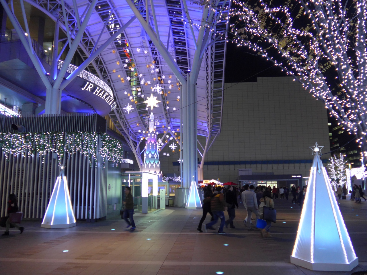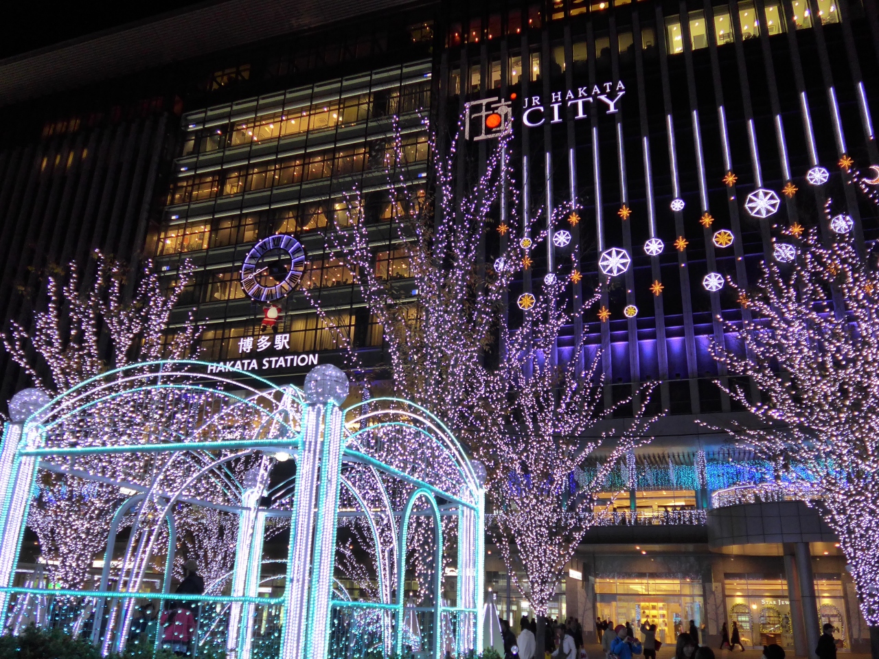 筑紫口(新幹線側口)にも博多口(大博通り側口・・・アミュプラザ・阪急百貨店・東急ハンズがあります)にもこの時期はイルミネーションが彩り多くの行き来する人々の目を引きとめています。
