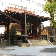三井住友海上火災駿河台ビルの西側にあります(神田駿河台1丁目)。かって、死病といわれ た疱瘡に特効があると人々に崇められたといわれているとのこと。しばらく改装工事のため閉鎖されておりましたが、今年3月から9月末までの改修工事で本殿を修復して傾きを戻し、屋根の銅版張りも新しくなりました。社務所を新築、ひびの入った鳥居も新造されました。
