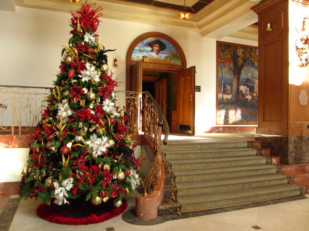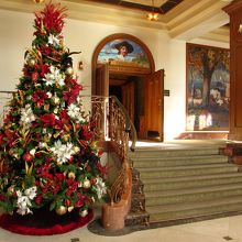 ・劇場の入り口やロビーにはツリーが飾ってあってとても華やかです。