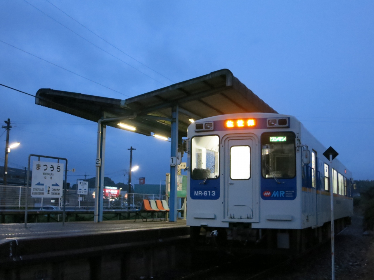 松浦鉄道の主要駅の一つです。単線の松浦鉄道において、上下の列車の交換もこの駅でしばし行われますが、主要駅のためか、時として停車時間がしばらくある場合もあります。ただ、駅員がいる訳ではないので、切符などは車掌兼運転手さんが確認します(ワンマン運転)。