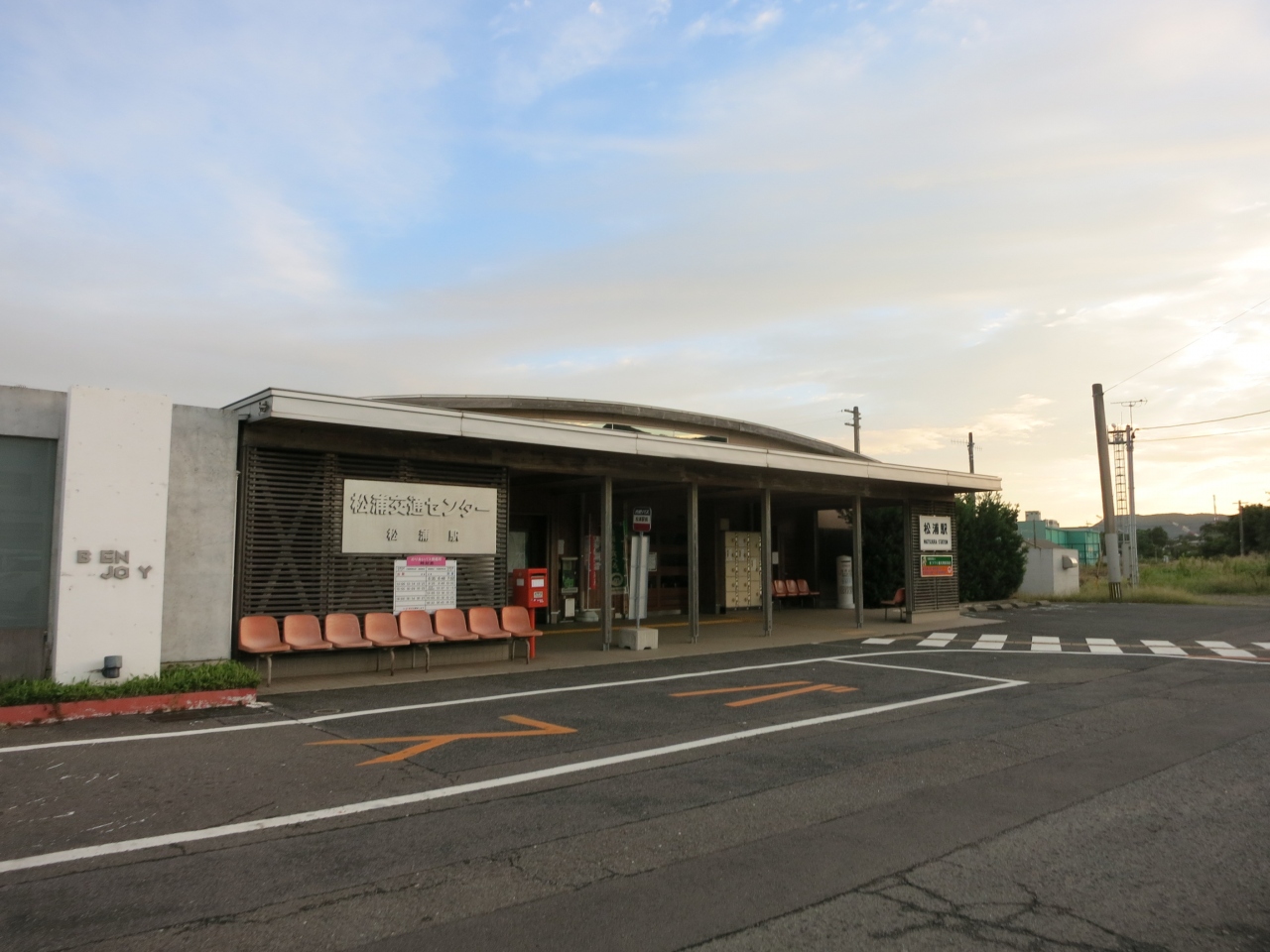 駅は駅舎がある南口ばかりでなく、跨線橋を渡り、線路の北側に出ることもできます。こちらには松浦市文化会館があるほか、ドラッグストアや200~300mほど行ったところにスーパー(ハイマート)もありました。また、文化会館の近くの道からは、平戸~福岡のYOKAROのバス停がありました。1日に上下2便ずつが停まるようです。