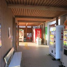 駅構内には、ベンチ、ロッカー、郵便ポストのほか、飲み物や焼きそば、たこ焼き、焼きおにぎりなどB級グルメの自販機がありました。