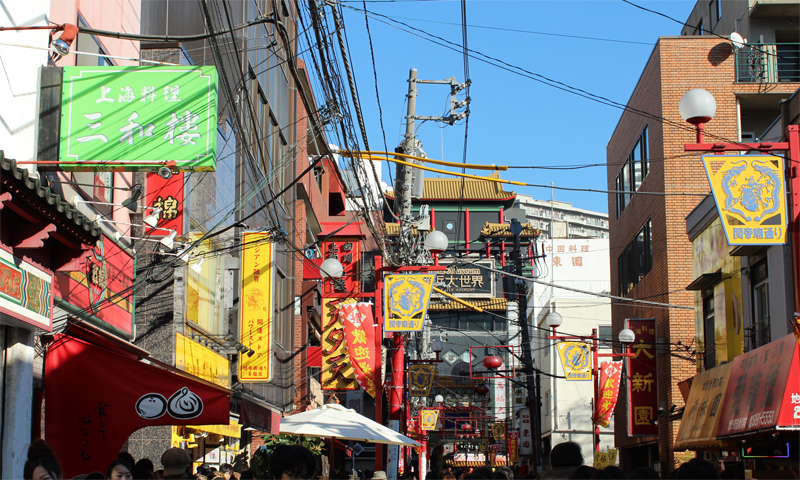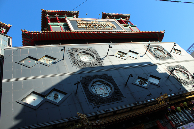 関帝廟通りの東の端にある天長門に相対して立つグレーの建物です。一階はおみやげ物などもあり、二階は屋台風のレストランになっています。中華街には飲食店以外のおみやげ物やさんなどは小規模なお店が多いので、規模で大きいのと関帝廟通りから見ると、威圧するような建物なので目立ちます。