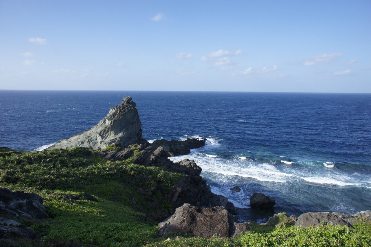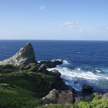 石垣島には珍しく、切り立った岩場に波が打ち寄せる場所。