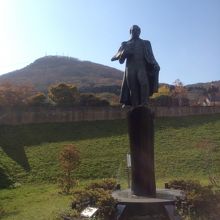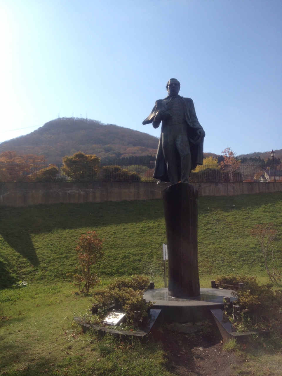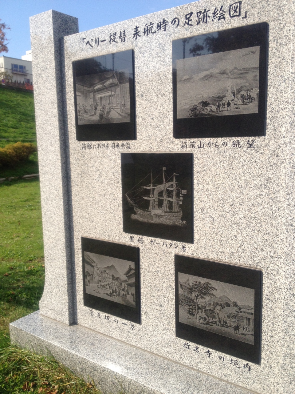 1854年に黒船5隻が函館に来航し、国際的な街に発展したきっかけを作ったのが彼です。来航150周年を記念して設置されました。