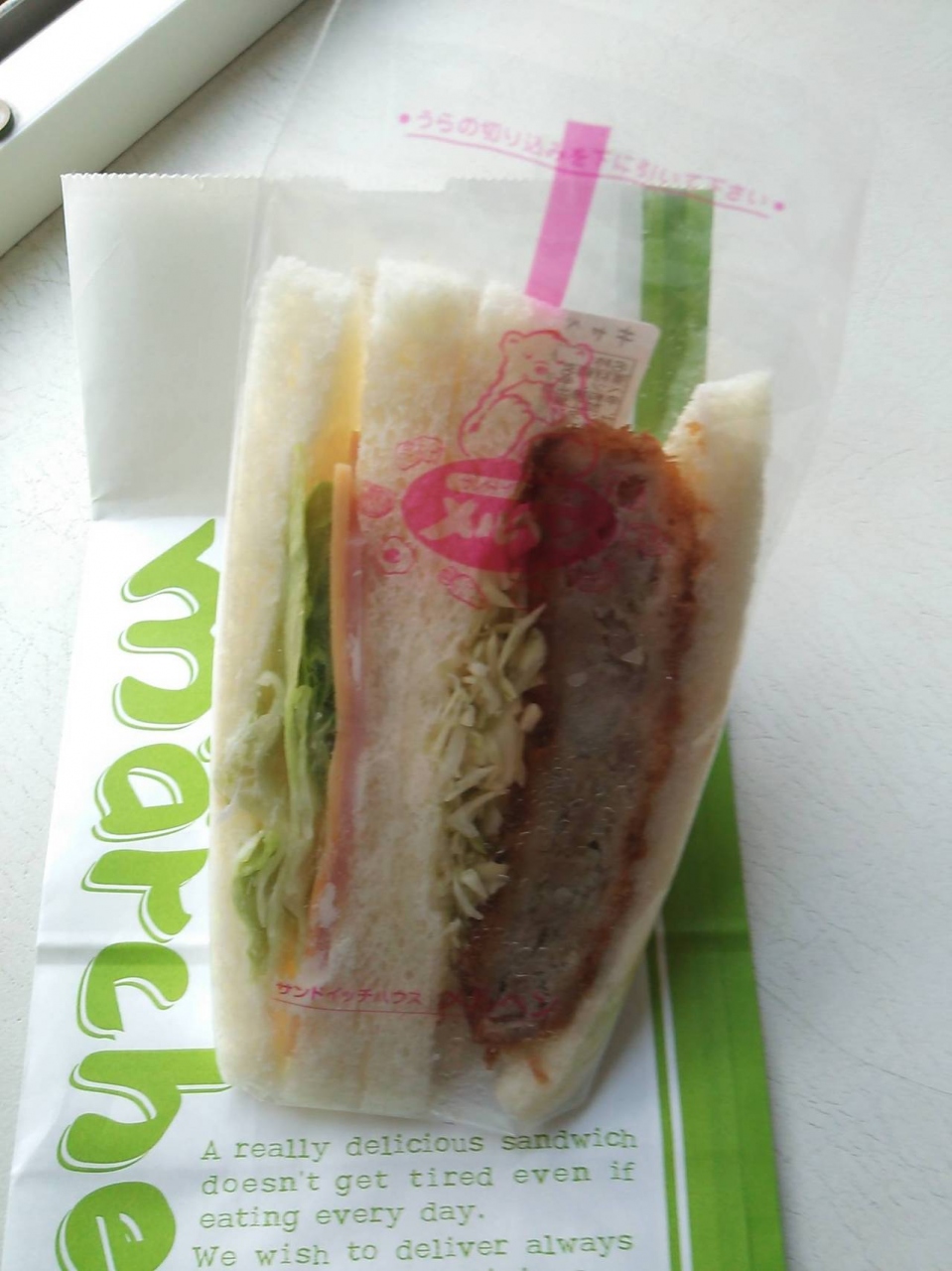 我が家では、少し高い、いやかなり高いサンドイッチだ。味は至って普通。本日のオススメで買ってみた。オススメだが、普段より御値段がお得なのかもわからない。種類は沢山あるが、全体的に御値段が高いと言う印象しか残らなかった。