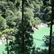 JR飯田線の“天龍峡駅”のそばにある姑射橋から下流に架かる、吊橋・つつじ橋まで広がる緑豊かな自然公園です。峡谷沿いには一周約2.5km、所要約1時間の探勝路が整備されています。遊歩道沿いには伊那節歌碑や天竜峡碑などが点在しています。遊歩道の所々に展望台があり、素晴らしい峡谷を眺望することができます。
