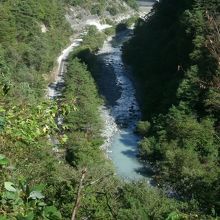 「小渋峡」は、中央自動車道の“松川IC”から車で約40分、県道59号線と22号線に沿った小渋川の渓谷です。渓谷には、小渋ダムによって造られた人造湖である“小渋湖”があります。湖面に映し出す周辺の森や遠く南アルプスの景観は見事で、特に秋の紅葉シーズンは大勢の写真愛好家で賑わうそうです。訪れたのが10月の初めだったため、紅葉はまだ始まったばかりで、観光客もおらず静かなところでした。