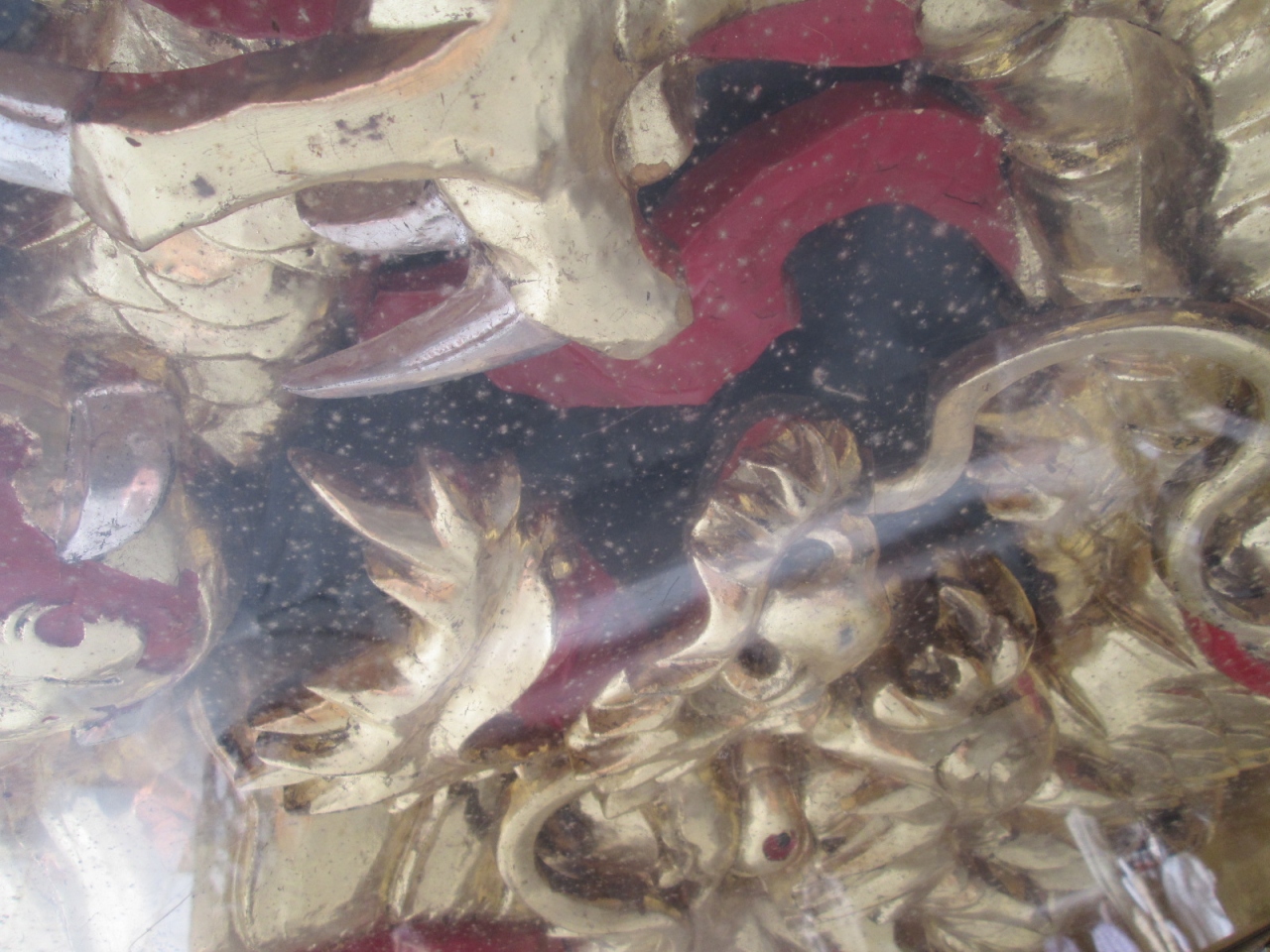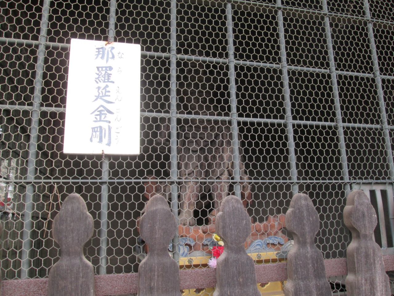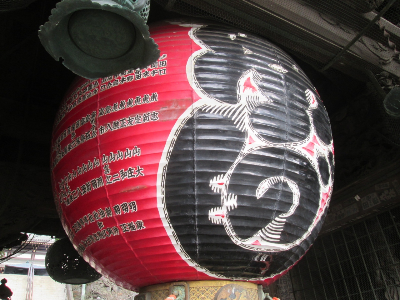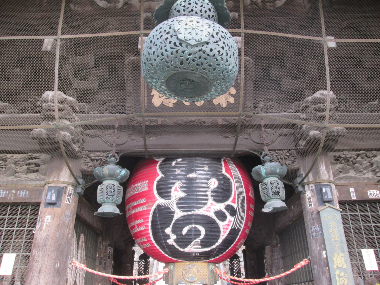 天保2年(1831年)に建てられた「仁王門」には、境内伽藍の守護門”として4体の彫像が収められている国指定重要文化財ですが、門中央に掲げられた”魚がし”と書かれた赤い大提灯も、まさに「成田山に来た」ことを実感させる光景ですね。提灯の底には龍の彫刻が収められており、これも見ておきたいポイントです。