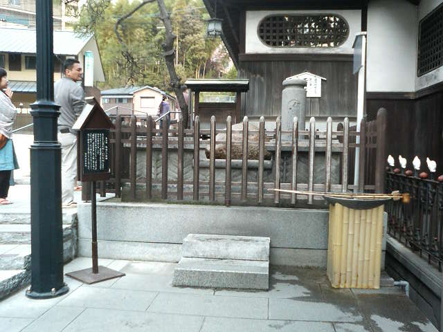 道後温泉の本館入口から左手に進むと、柵に囲まれたところに置かれている石です。