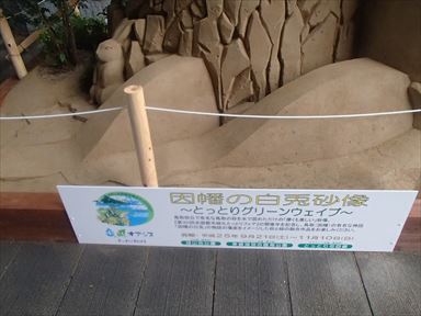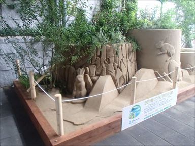 屋外に砂で作った作品が展示されていて、特に、因幡の白兎砂像が有ります。
