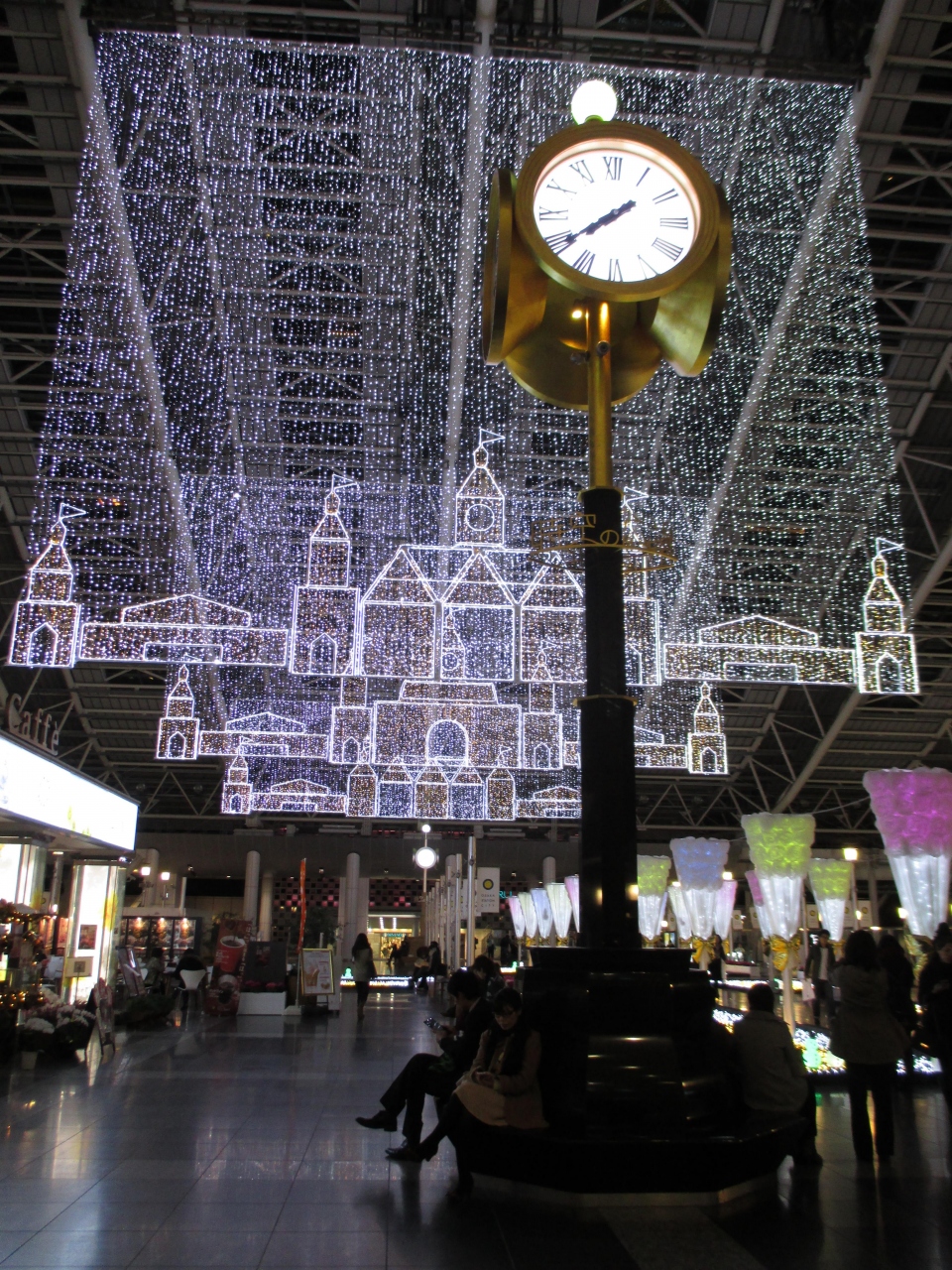 11月下旬に行きました。クリスマスのLRDの飾りつけがされており、時報とともに音楽とLEDのショーみたいなのが始まって、無料でコレみていいの!?という美しさ。とてもロマンチックでカップルも多かったです。夜のせいかあまり人ごみが多いという感じでもなく夜風がここちよかったです。ルクア、大阪三越伊勢丹、大丸うめだ店とグランフロント大阪へもすぐなので、とにかく一度行ってみるのをオススメします。他のどの駅にもない、とてもステキな広場だと思います。カフェもあるよ。