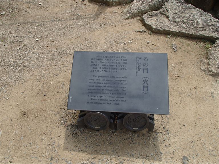 姫路城の「るの門(穴門)」です。 この穴門は、正規の通路から外れた位置の石垣に穴を作って、その場所が目に付かない様にしています。一種の抜け道的な門となっていて、大きな石によって守られています。ぜひ、一度、行ってみてください