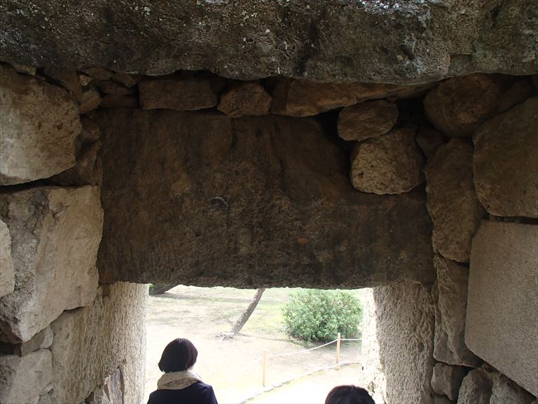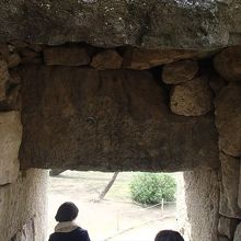 この穴門は、正規の通路から外れた位置の石垣に穴を作って、その場所が目に付かない様にしています。