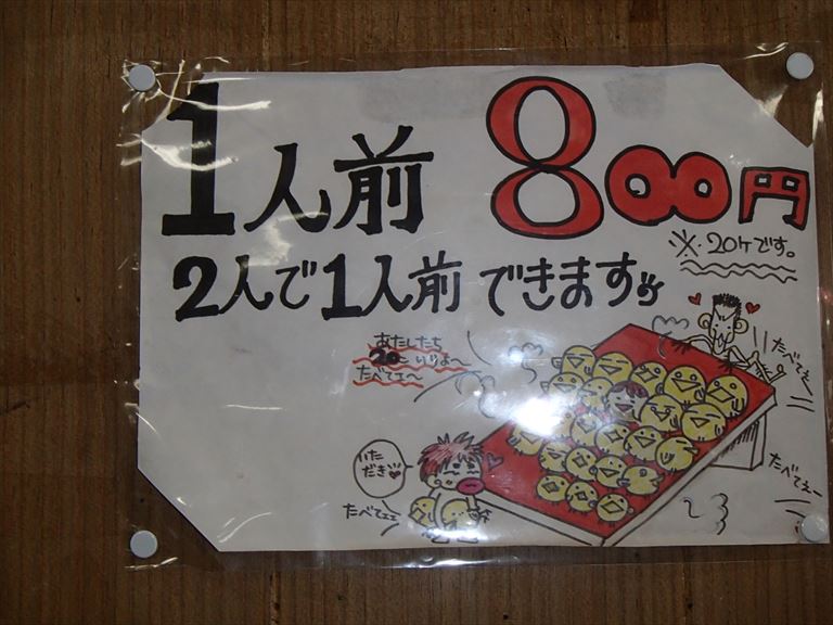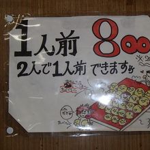 明石焼きの専門店で、一人前800円で、20個の明石焼きを食べる事ができるので、二人で一人前も対応してくれています。