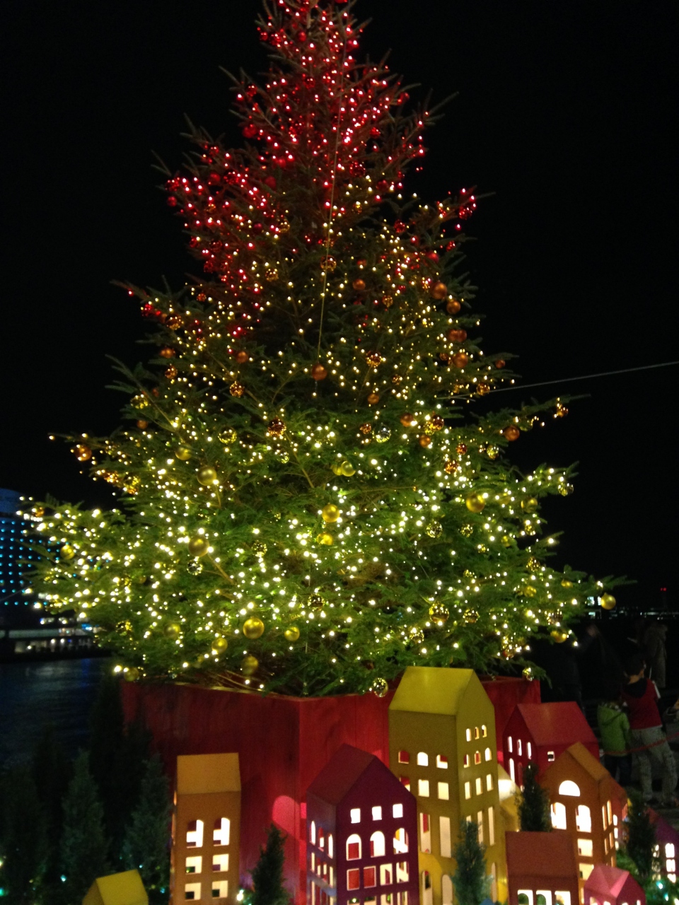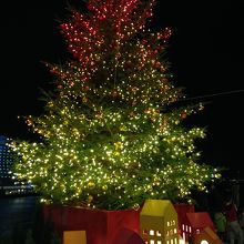 海沿いのデッキ部分に毎年色々なクリスマスツリーが登場し