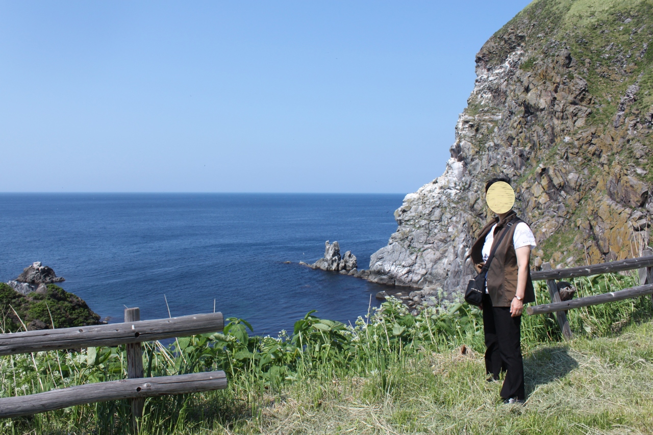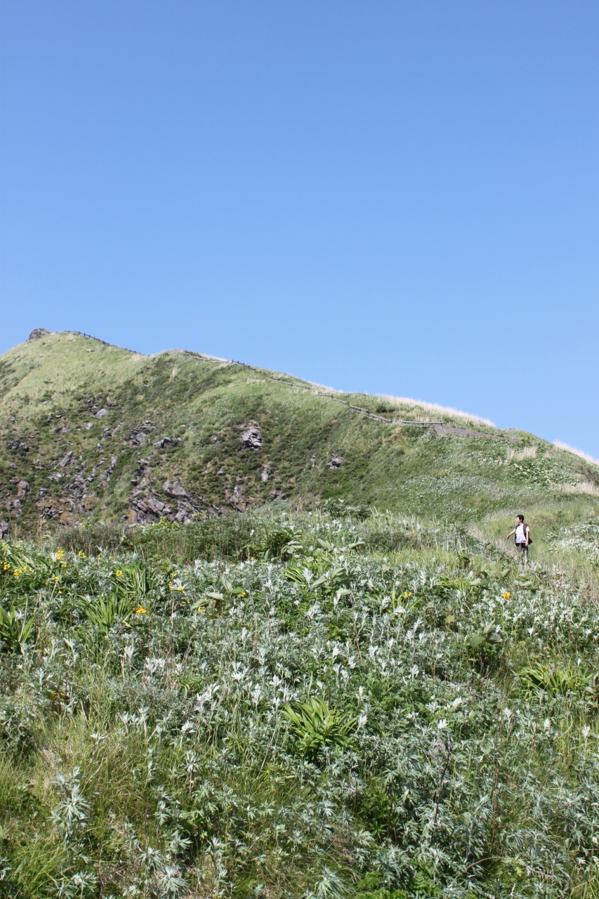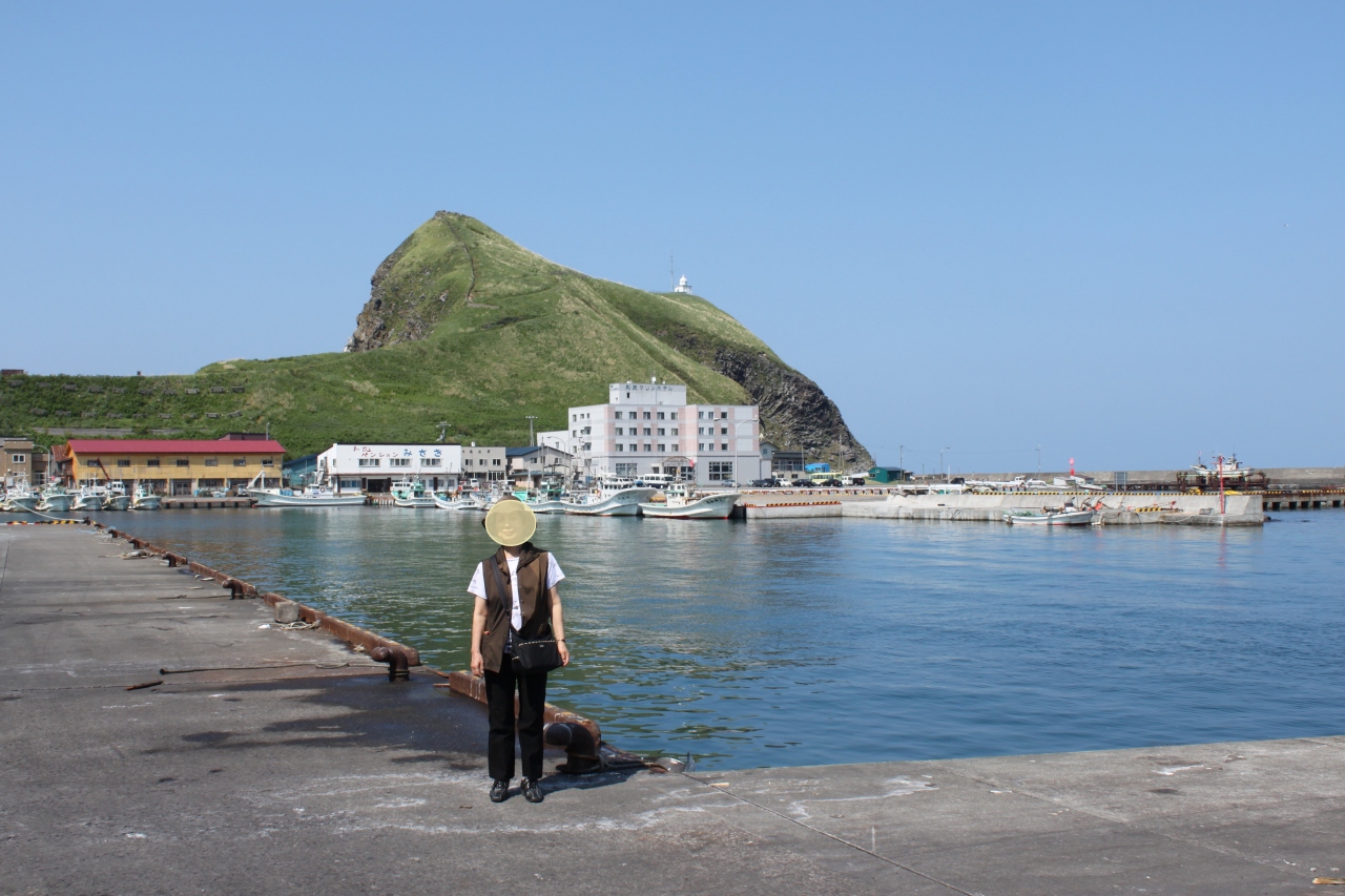 ペシ岬は利尻島の鴛泊まり港に近づくと海からもよく見える。フェリーを下りると、この丘のような岬が“へ”の字のような形で突端にあるのが見える。