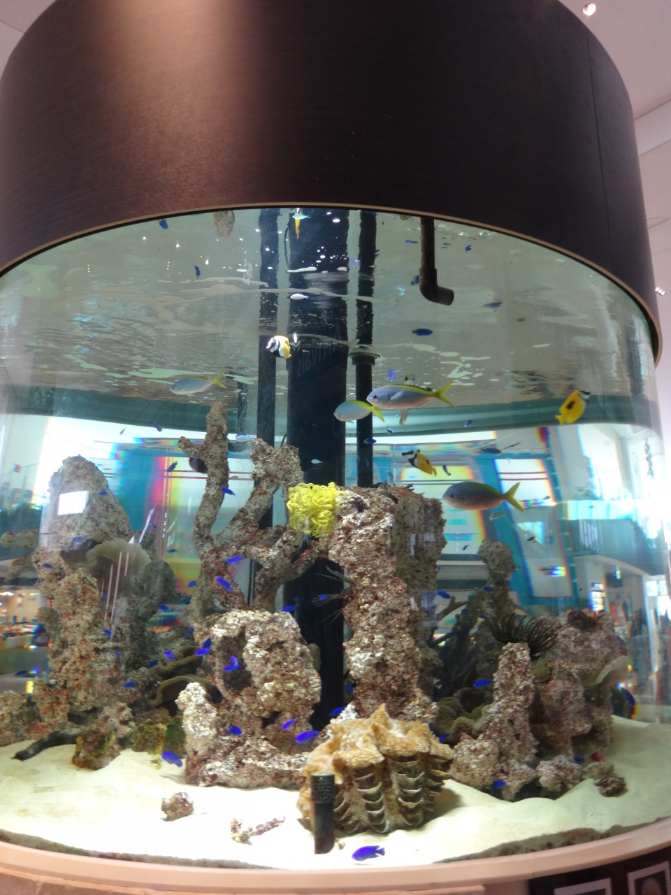 今年の3月に建ったのできれいでピカピカでした。着くとすぐに熱帯魚がいる大きな水槽がありました。