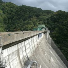 高さ112mの堤頂部から見下ろすと凄い迫力