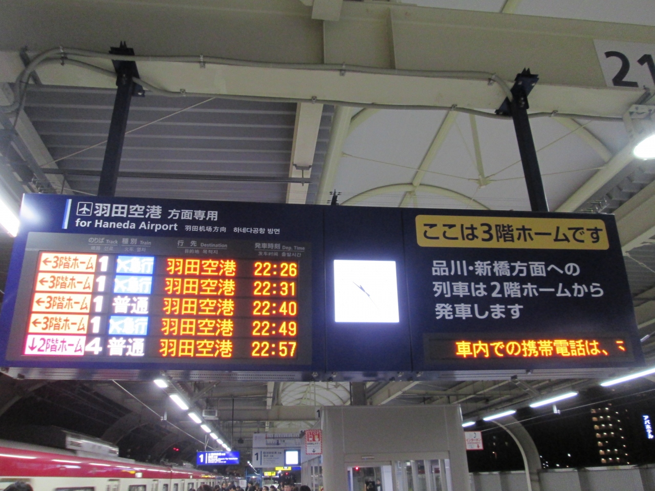 羽田空港の国際化にともない国内線だけでなく、国際線ターミナルを利用する人々で明らかに乗降客が増えました。しばらく続いた駅構内の改装は終了し、フロアが違うホームとなり、これからは島式ホームで固定するようです。