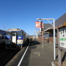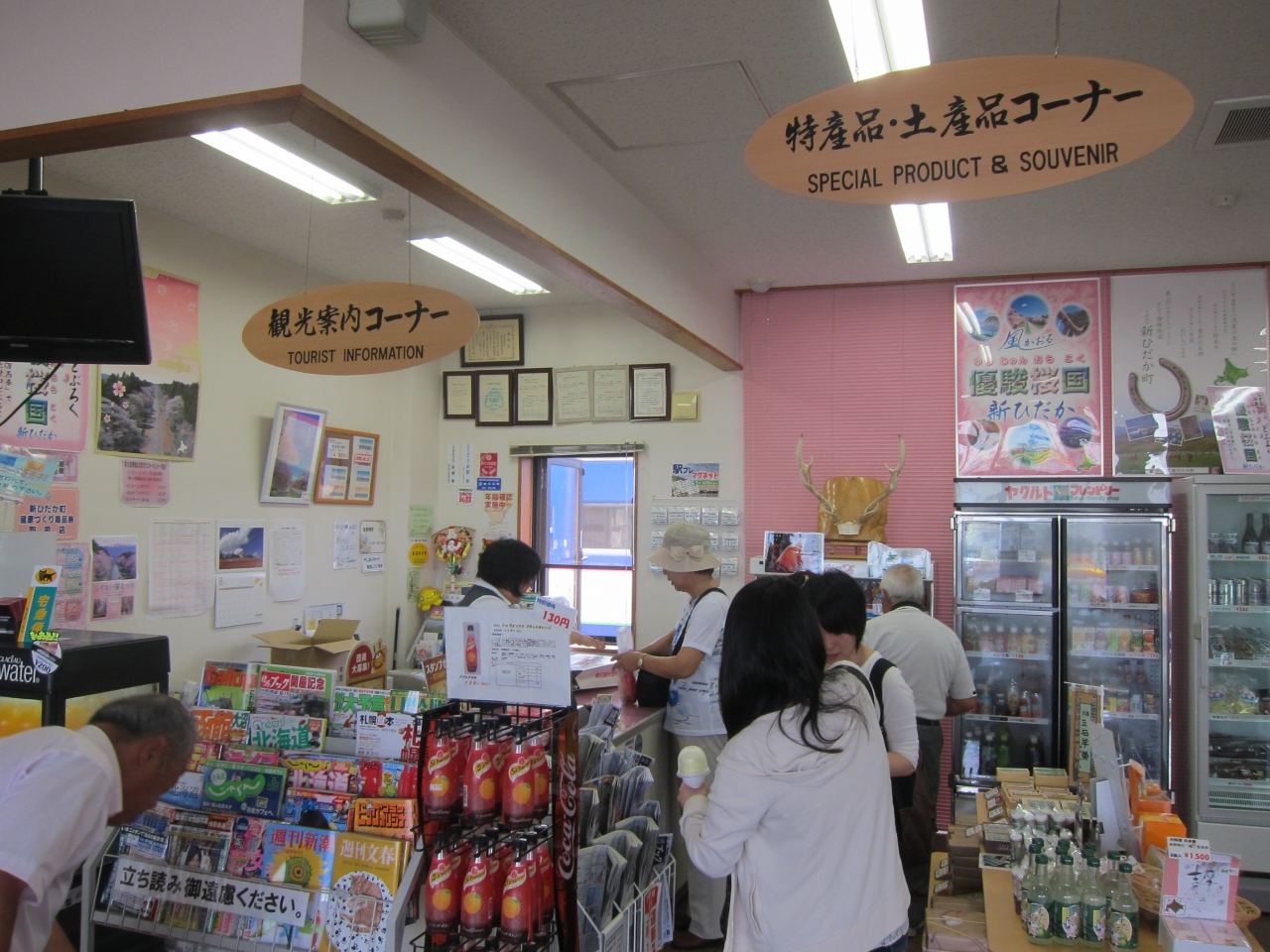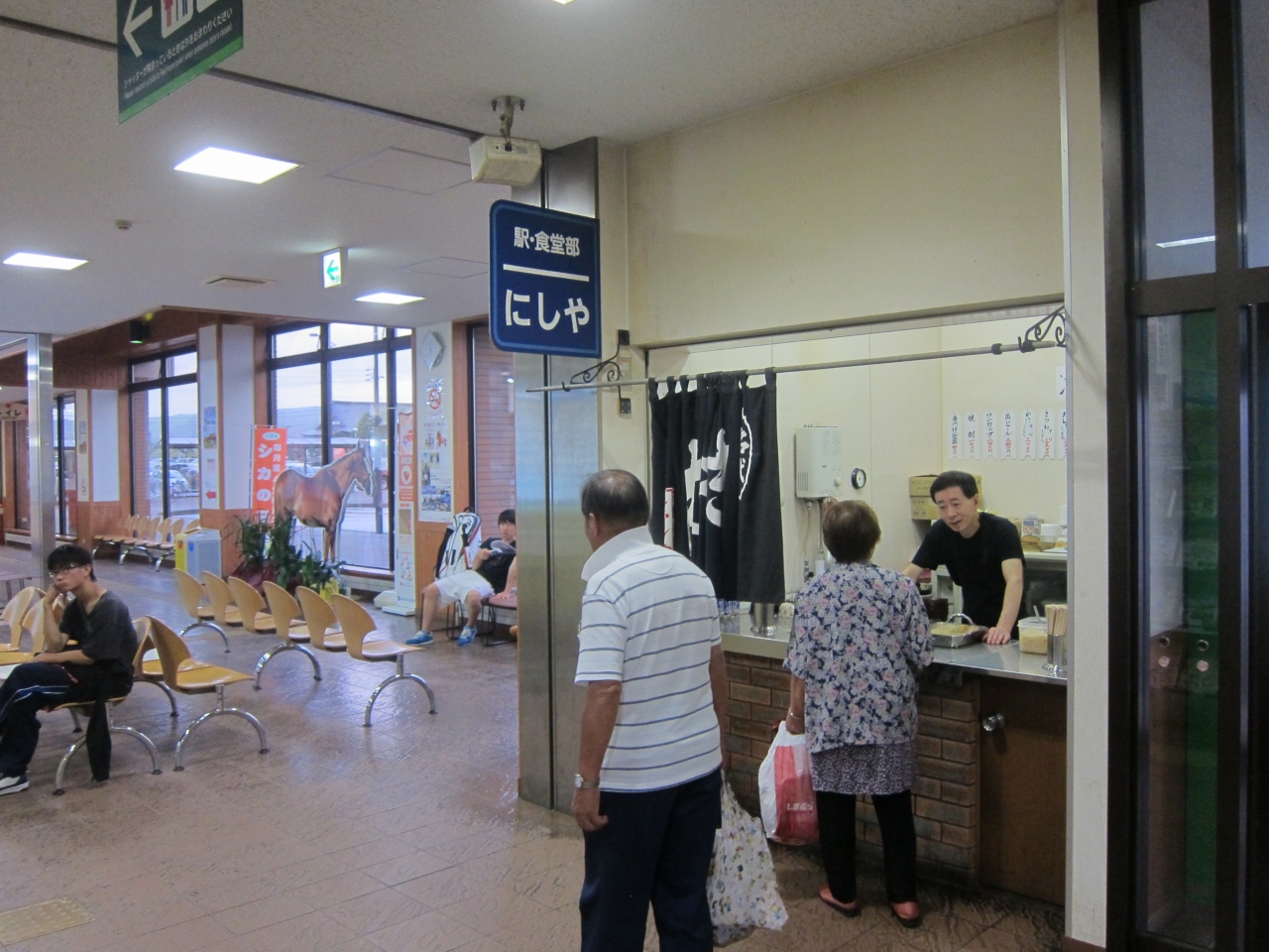 駅の中には立ち食いそばの店(にしや)や、おみやげも販売しているキオスク、軽食コーナーや観光案内所もあるので、長い停車時間の場合(時として20分近く停車することも)、フリー切符などを持っている人は、時間内で途中下車してちょっと一服。そばをかきこむ人、日高のおみやげを買う人、ソフトクリームを食べる人、トイレに行く人など、皆、めいめいの限られた時間を過ごします。