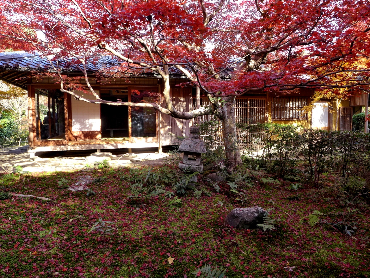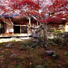 中は狭く書院と茶室があり庭のなかにモミジや楓が紅葉していました。