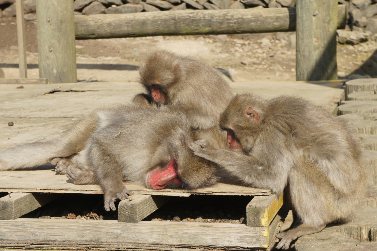 銚子渓自然動物園おさるの国は、餌付けされた約500匹の野生のニホンザルが生息しているところ。餌付けされていても、れっきとした野生猿。観光客も餌をやることができるのですが、人間の方が檻に入って、金網の向こうから猿に餌をやります。