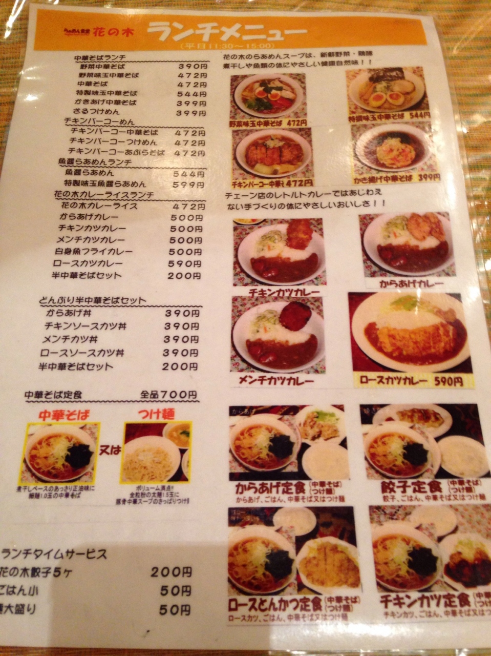 390円から700円のランチ、500円のからあげカレーをたのみました。