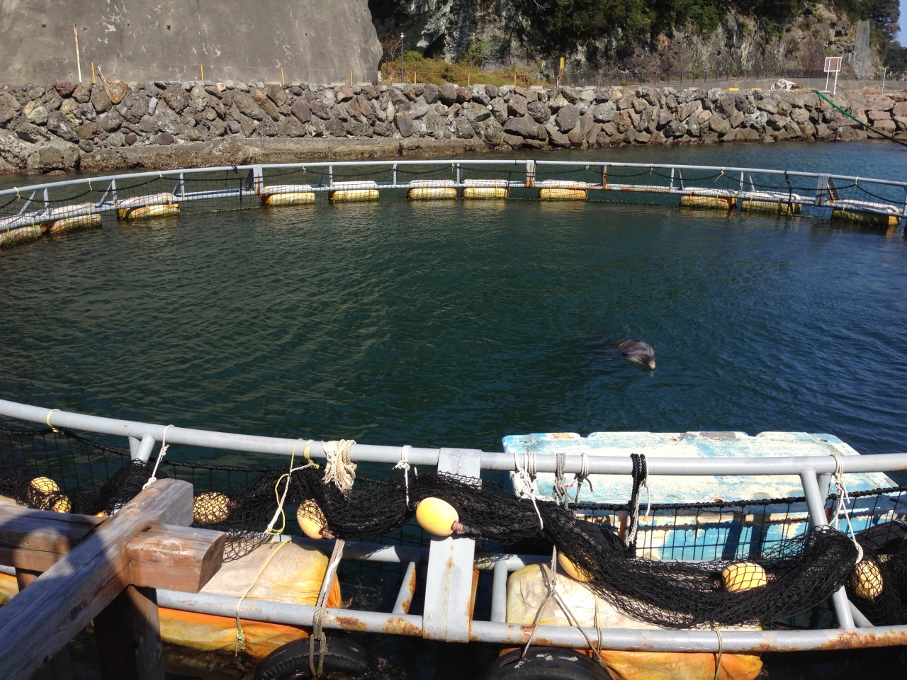 海をそのまま利用した素朴な水族館で、イルカと一緒に遊んだりすることもできます。