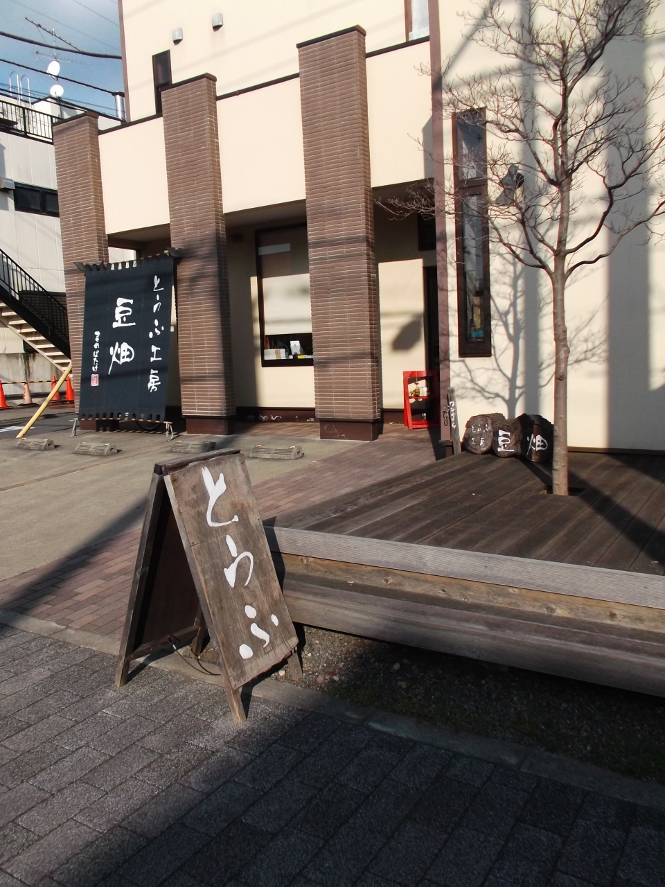 大和の西鶴間交差点から南林間四条通りへ少々行った右に和風のしゃれた外観の店構え発見!。和菓子屋さんのようでお茶屋さんでもない・・なんととうふ屋さんではありませんか。店頭の木のデッキは休憩処ですか・・