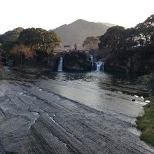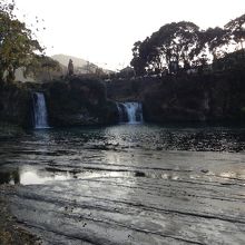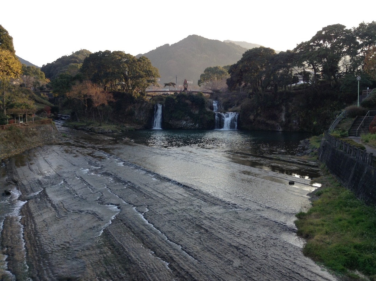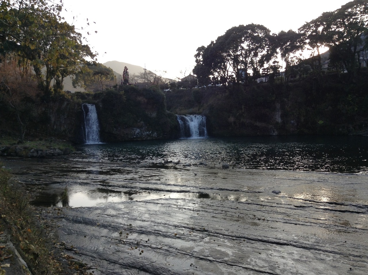 過去の火山活動がきっかけで滝が形成されていて、川底は岩畳でちょっと珍しい光景でした。