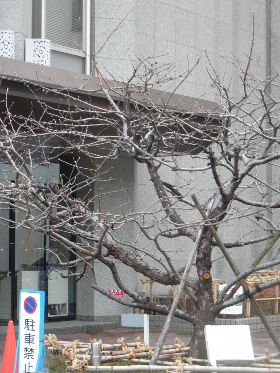 札幌の地下鉄南北線の北18条駅は、北海道大学に近い駅のひとつなので、朝夕には多くの人々が利用します。 ここの大きなビルの前はきちっと整備されたスペースがあって、そこにニュートンのりんご木があります。 秋にはたわわにリンゴがみのっていたけど、12月の中旬に訪れてみると、もう葉が落ちて枝ばかりになっていて、冬の訪れを感じることができました。