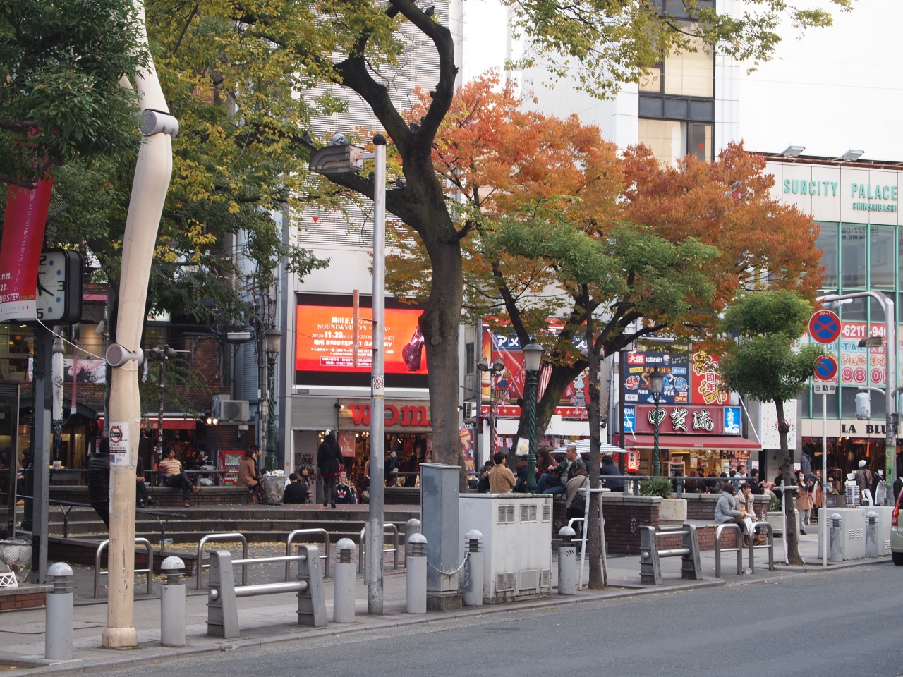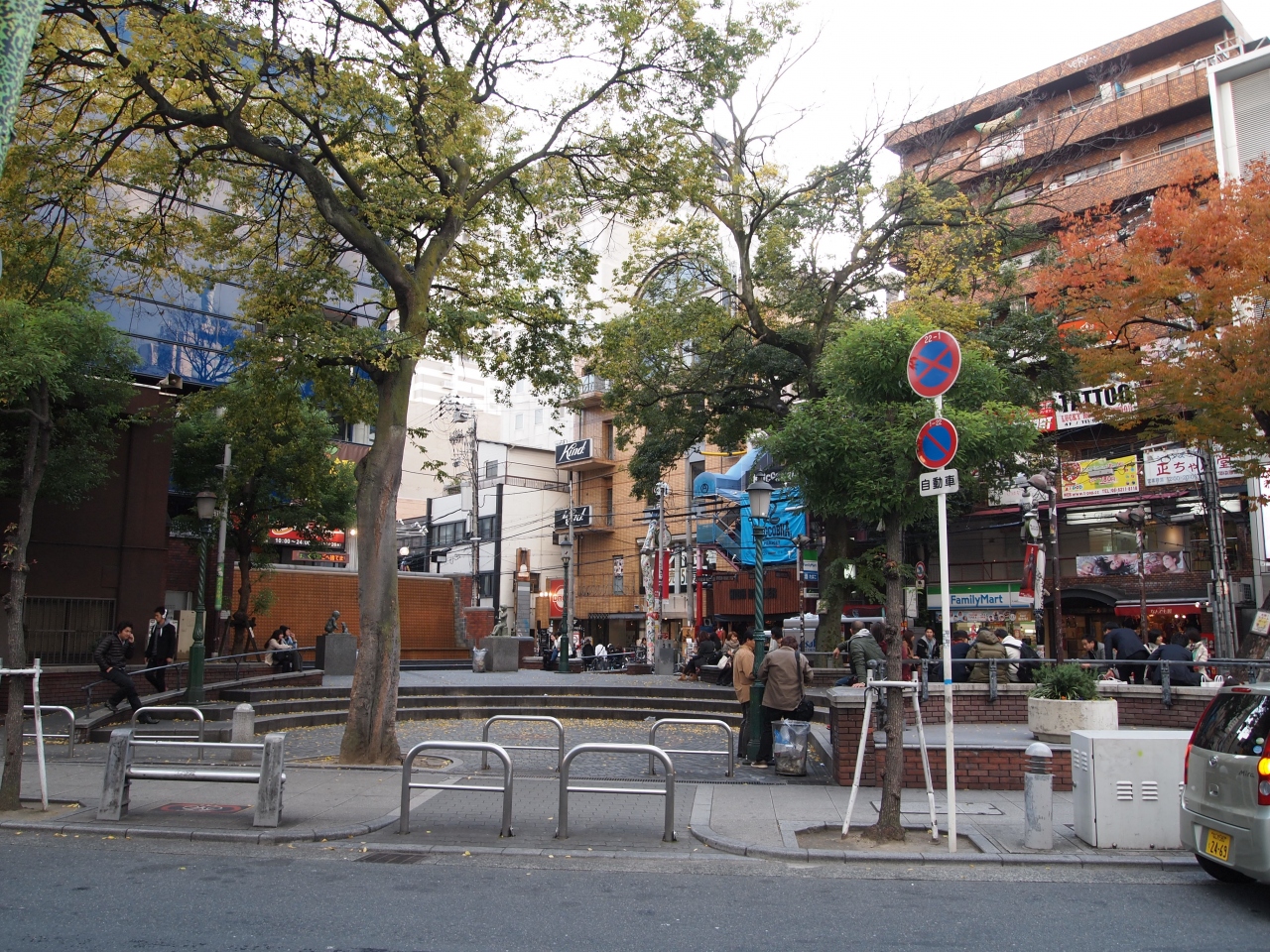 三角公園はアメリカ村にある名前のように三角形の形をした公園です。