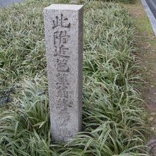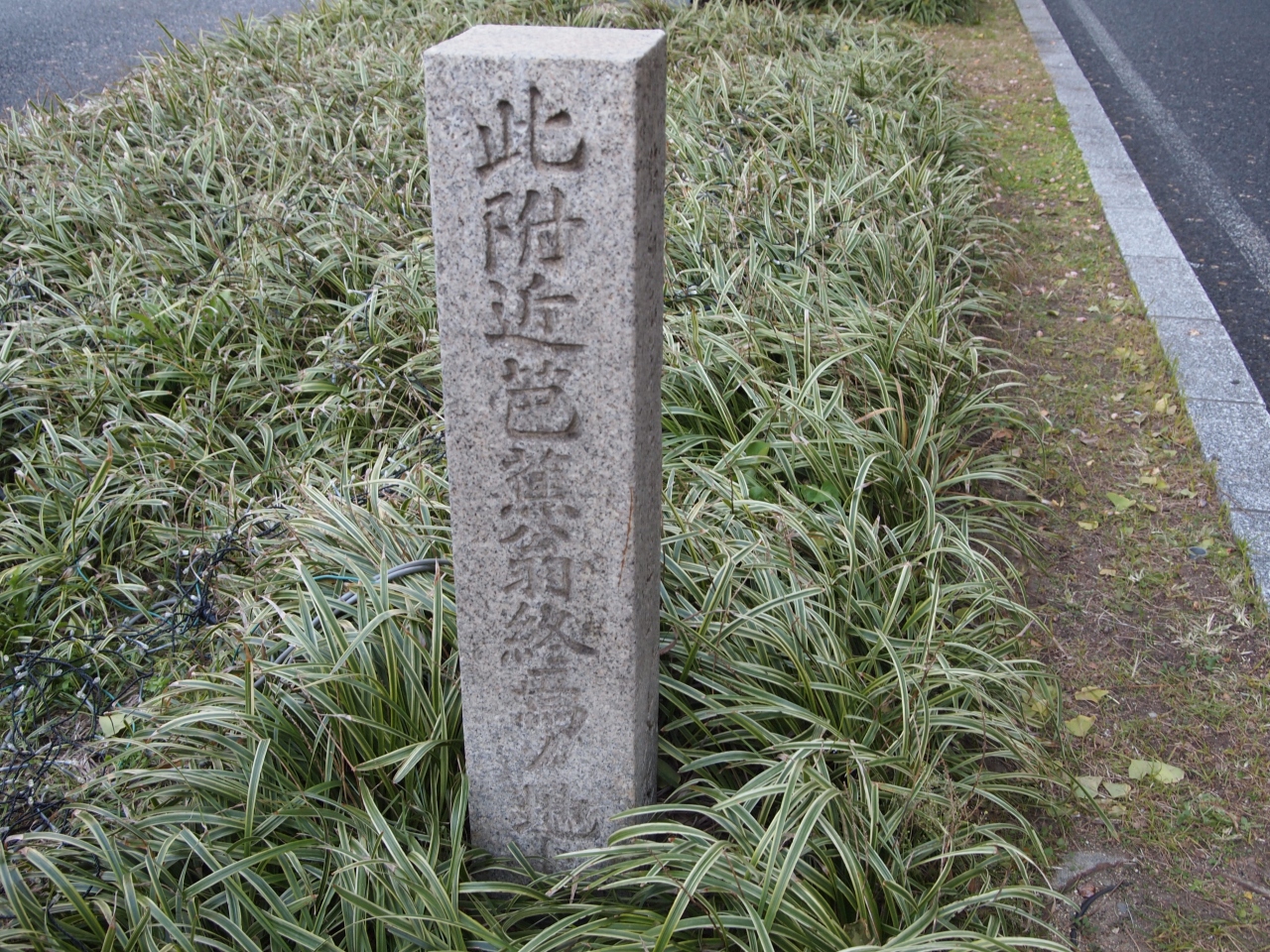 芭蕉終焉の地の記念碑は御堂筋の道路の分離帯にあります。