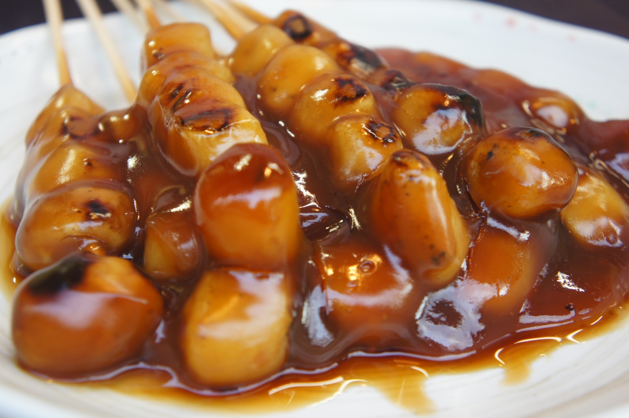 桃山餅は、御香宮神社の正面にあるみたらし団子のお店。店頭には大皿に載ったみたらしだんごがたっぷりのたれに埋もれていました。おいしそうですねえ。団子は、ちょっと小さめ。この方がたれの絡みがいいってことでしょう。味は問題なしというか、確かにおいしいです。しかし、歩きながら食べるにはもっと大きい方がいいように思いました。