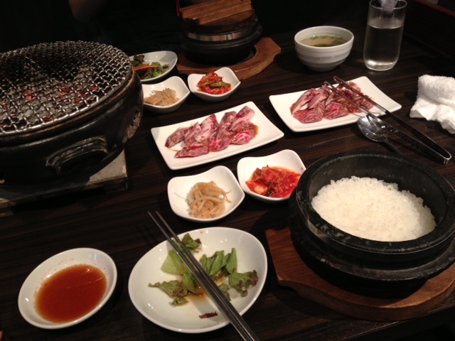 ランチタイムに松坂牛の焼肉を食べました。韓国料理屋の割におかずの数が少ないですが、ご飯は石窯で炊いた出来たてのものを出してもらえますし、肉も美味しく、目の前の七輪で自らの加減で焼けますので、確実に満足できると思います。