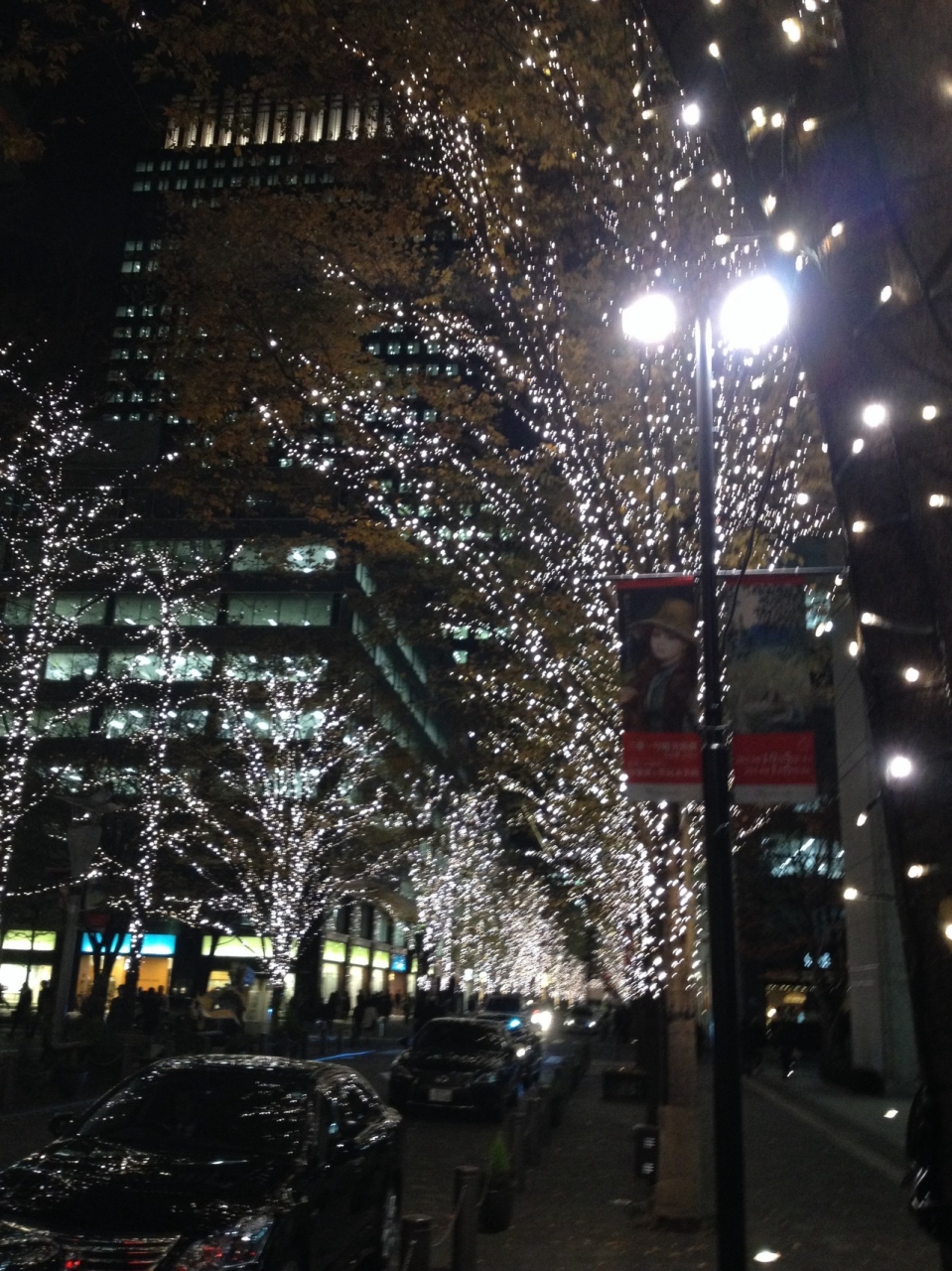 丸の内から有楽町まで仲通りがえんえんとライトアップされます。街路樹の葉っぱ一つ一つにライトがついてる感じです。