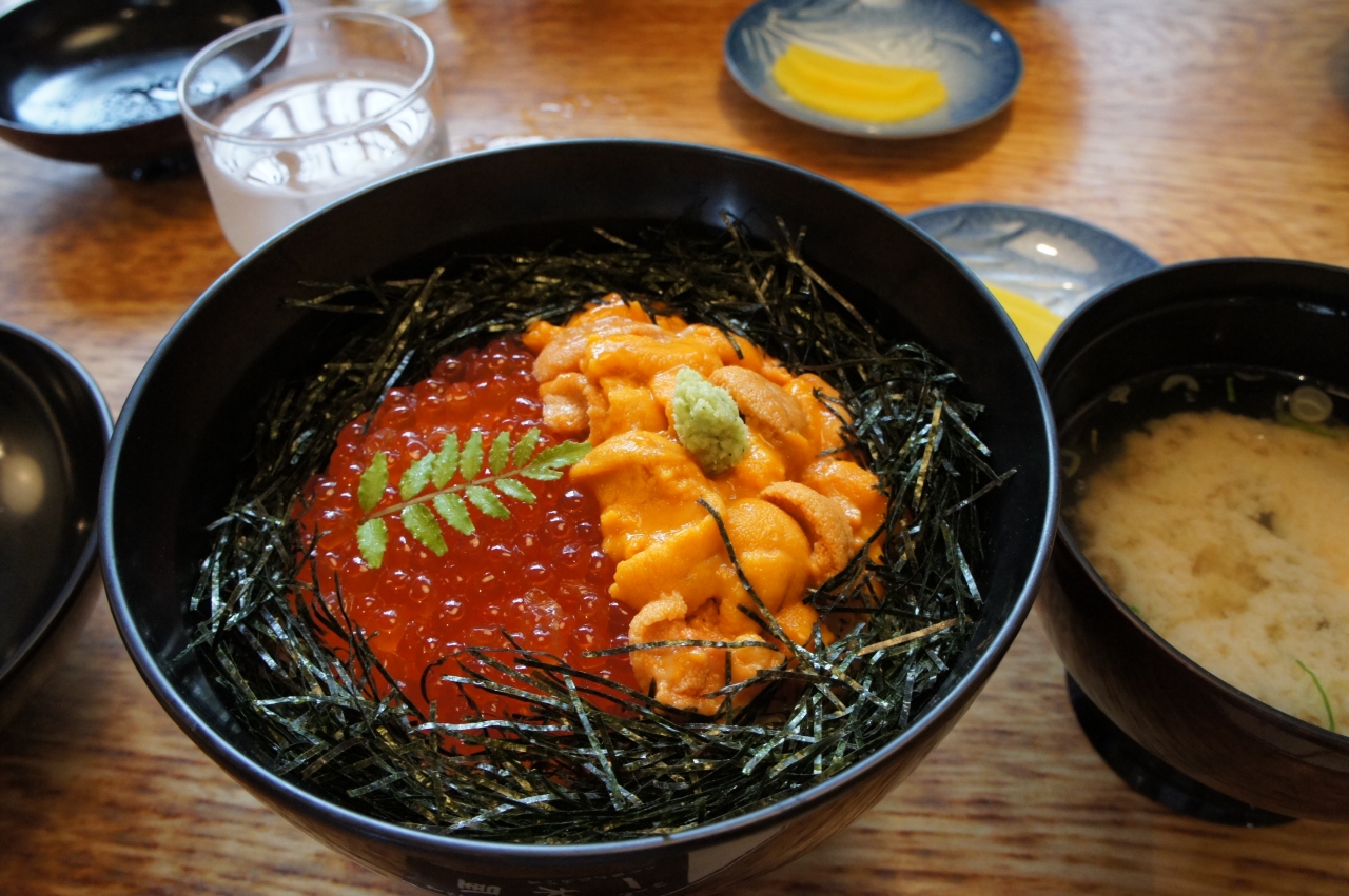 注文したのは、もちろんこの店の名物であるうにいくら丼です。これでもかといわんばかりに、ごはんの上に、エゾバフンウニといくらが敷き詰められています。うには新鮮かつ濃厚で、口の中にクリーミーなうにの味が広がります。やはり本場のうには一味ちがいます。いくらもとてもおいしく、ぷちっと噛んだ瞬間、うまみがあふれてきます。