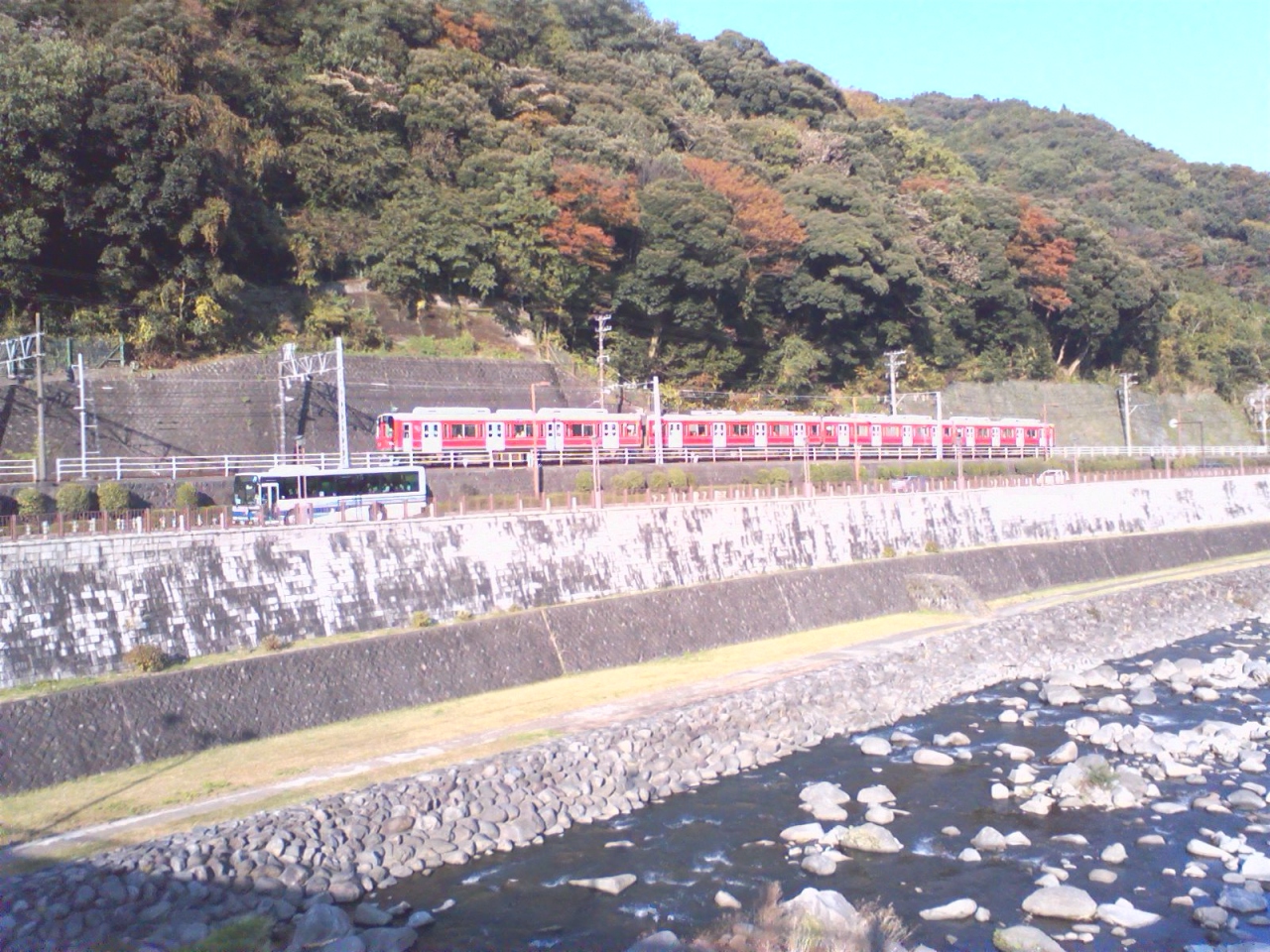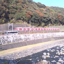 小田原ー箱根湯本間は、小田急の電車に箱根登山鉄道のイメージのラッピングをした電車が使われています。