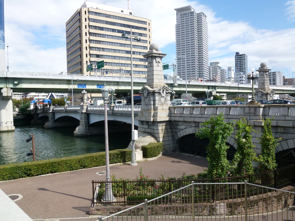 大阪水の都と呼ばれるだけあって、大川周辺には幾つもの橋が架かっていますね。この難波橋も大川に架かる橋です。橋の端に鎮座するのはライオンさん。まるで狛犬のようですね。巨大な橋も造られるのに歴史がありますね。難波橋(なにわ橋)からながめる景色は開放的で吹き抜ける風も心地よく気持ち良かったです。