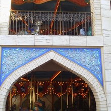 ご存じ東京ディズニーシーにあるカルーセル(メリーゴーランド)がここ「キャラバンカルーセル」。ここは、宮殿の中庭の右側にある、ひと際大きなドーム屋根の二層式カルーセルですす。ここでは、美しいアラブ馬やラクダ、神話に登場する幻の動物などがあり、個人的には2階側の方が若干景色もよく見れるのがありがたいですね。今回は、ジーニーの上に子どもも座れましたので、非常に喜んでいました。