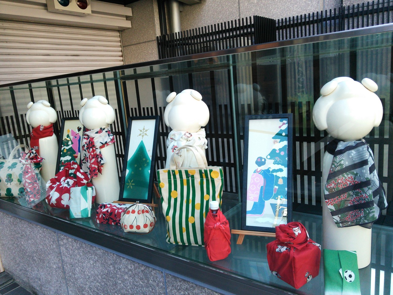 道路に面したディスプレイも素敵で、目にとまりました。どちらかと言うと、柄を現代風にアレンジしているものが多かったです。例えば今の時期、サンタさんの絵柄など。