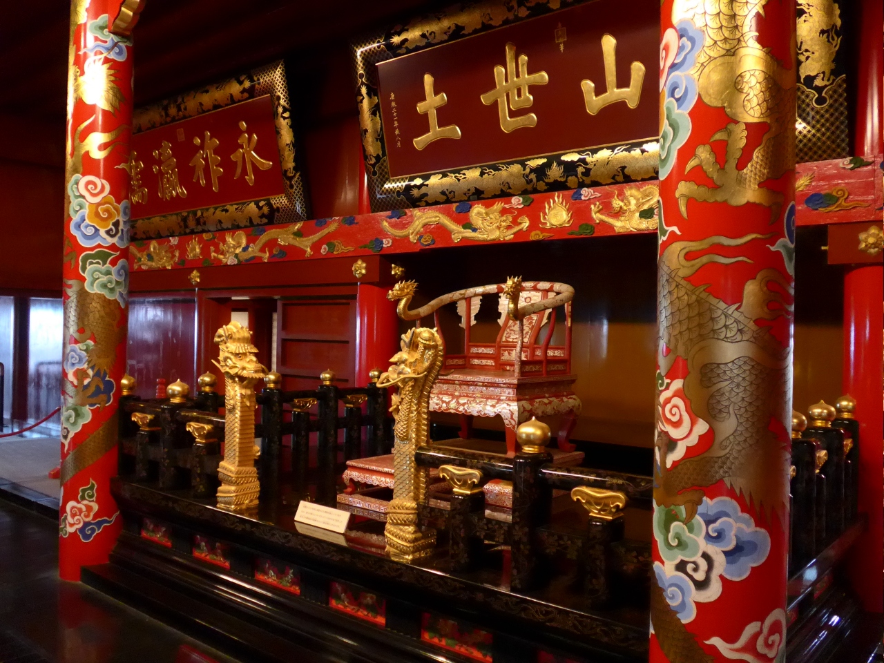 正殿を二層三階建てとすることや装飾化した龍柱は日中にも類例がなく、琉球独自の形式といってよいでしょう。