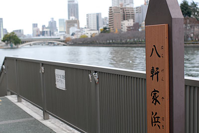 八軒家浜は古くから伏見と大阪を結ぶ三十石船の発着場で、江戸時代に八軒の船宿があったからと言われていたようである。