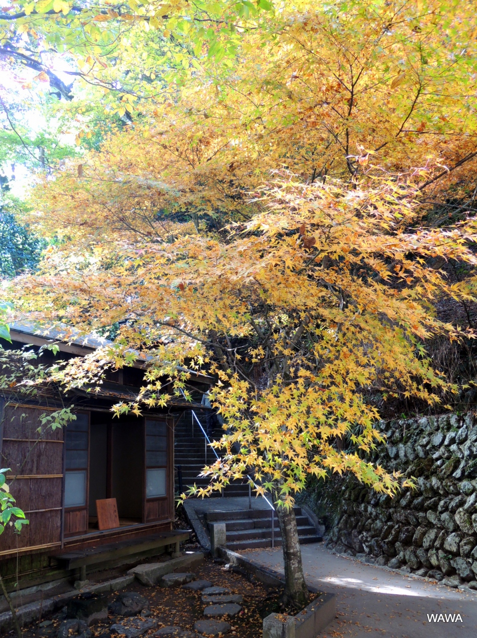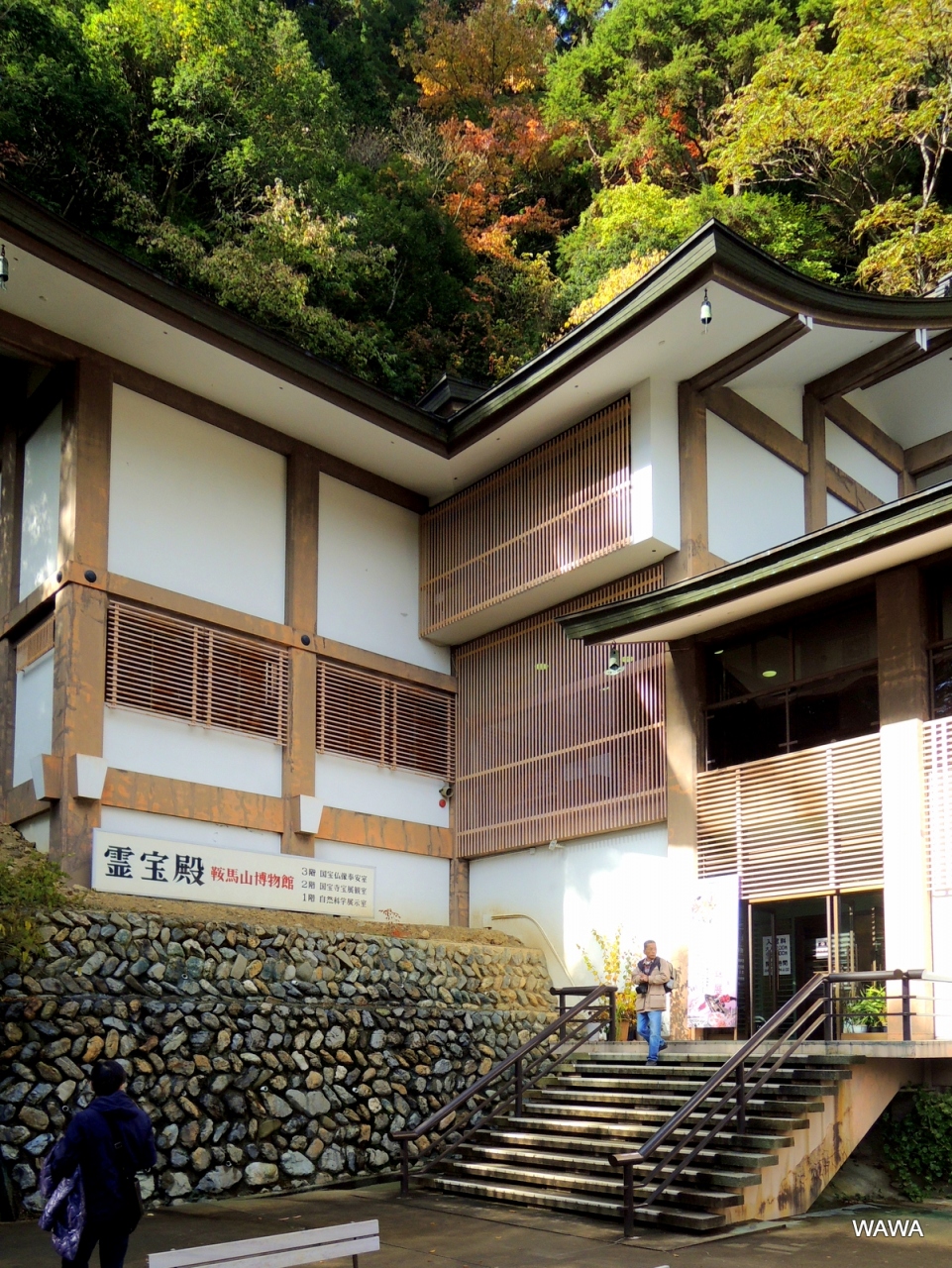 鞍馬寺の霊宝殿は、鞍馬山の動植物に関する展示、与謝野鉄幹・与謝野晶子の遺品等の展示、仏像(国宝の木造毘沙門天立像、木造吉祥天立像、木造善膩師童子立像の三尊像など)や寺宝の展示など3部門に分かれた博物館です。博物館の周辺は眺めが良く比叡山などを望め、紅葉時期はモミジの木が多く特に綺麗でした。