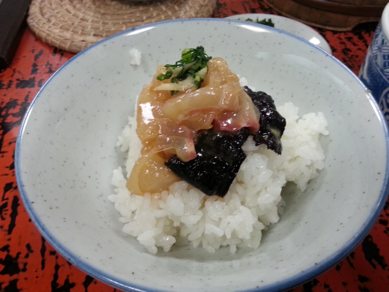 福岡の料理で感じた事はサバや鯛の刺身を甘辛い醤油に浸けて、味付けし、すりごまで芳ばしさとコクをだし、ご飯にあう一品に仕上げていること。当然、ご飯にあうなら、お茶漬けも美味しいはずで、ココ、よし田は鯛茶漬けで有名です。鯛茶漬けを頼んで出てくるのは、お茶碗、おひつ、味付けされた鯛の刺身。至ってシンプルですが、期待を裏切らないものでした。
