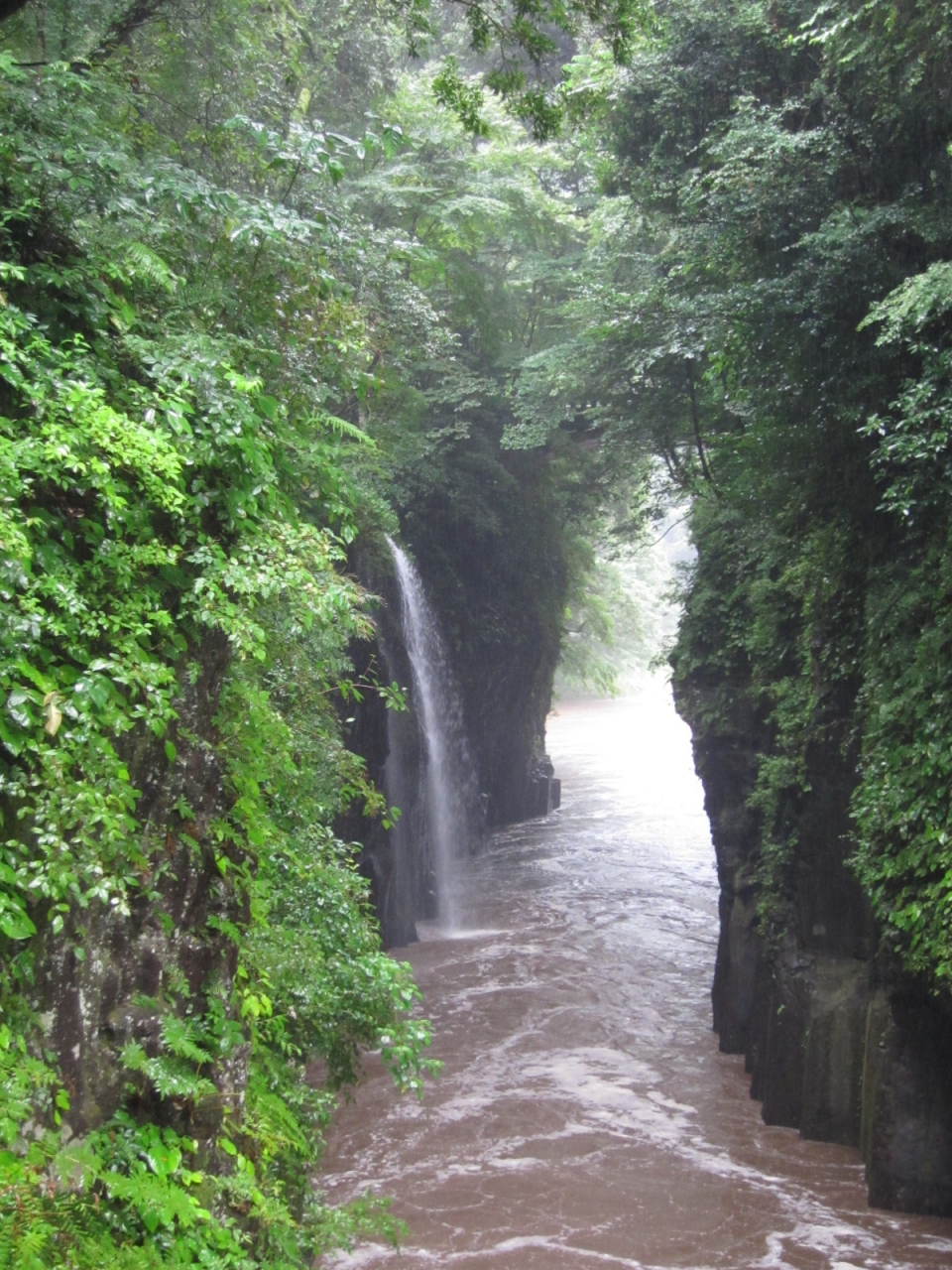 高千穂峡の横に遊歩道があり、歩きながら景色を見ることができます。真名井の滝が見やすい場所は少し展望台のようになっていました。