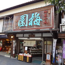 太宰府天満宮へと続く400m近い参道の中にあります。多くの和菓子屋さんが並ぶ中、歴史ある看板が特に目を引きます。創業60年を超える和菓子店です。霊峰宝満山を表現した、「宝満山」など趣ある和菓子が並んでいます。