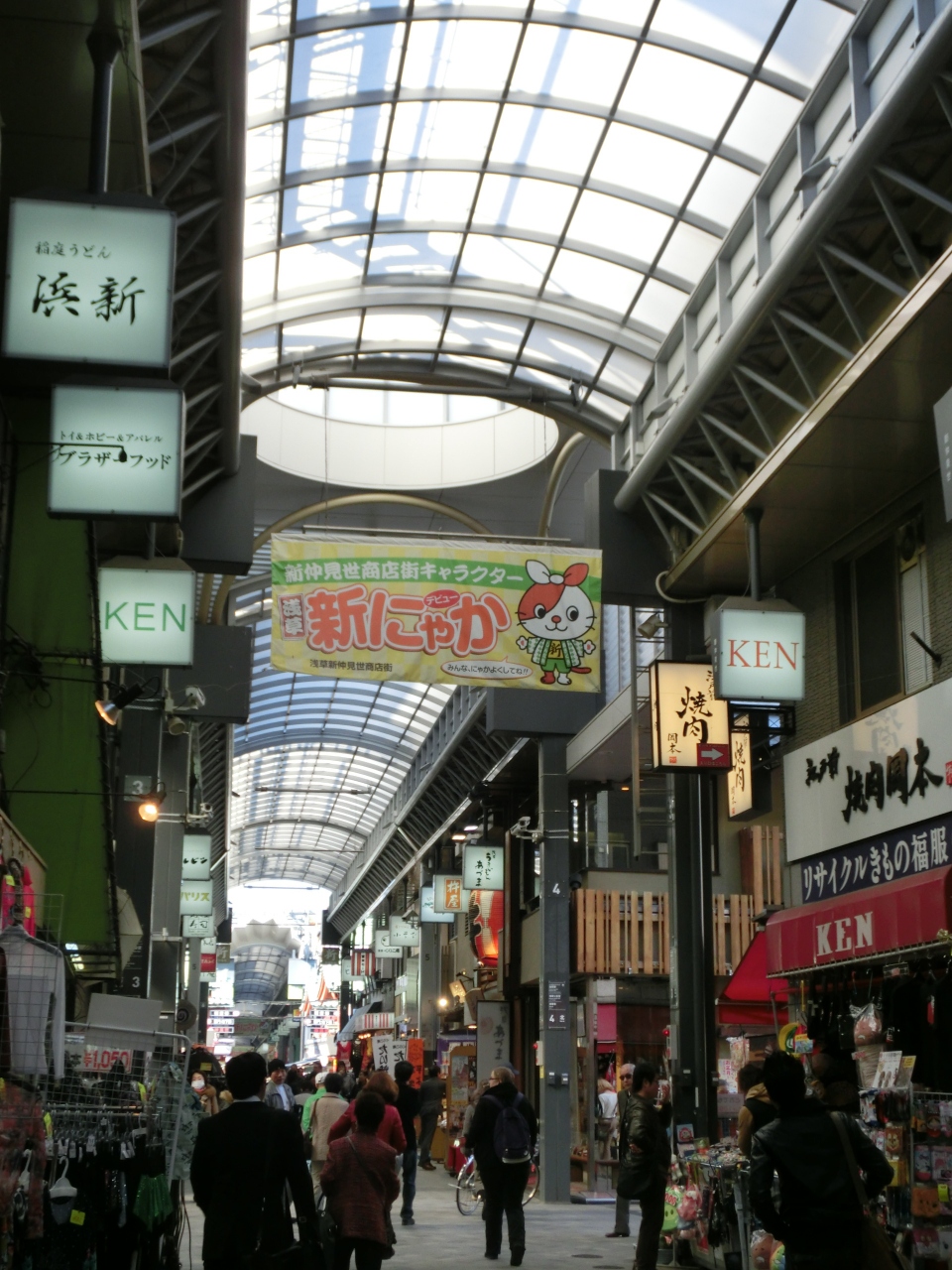 つくばエクスプレス浅草駅の在る国際通りから、東武スカイツリーライン浅草駅の在る馬道駅まで続く、400mほどの長いアーケードの商店街です(第1部から第5部までに分かれていて、1部と2部の間で仲見世と交差します)。