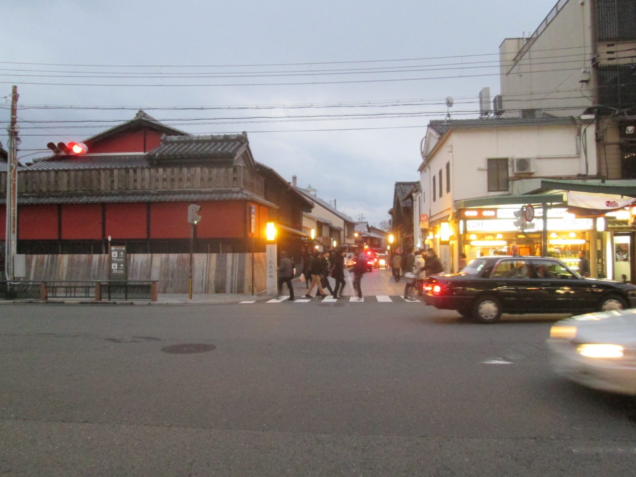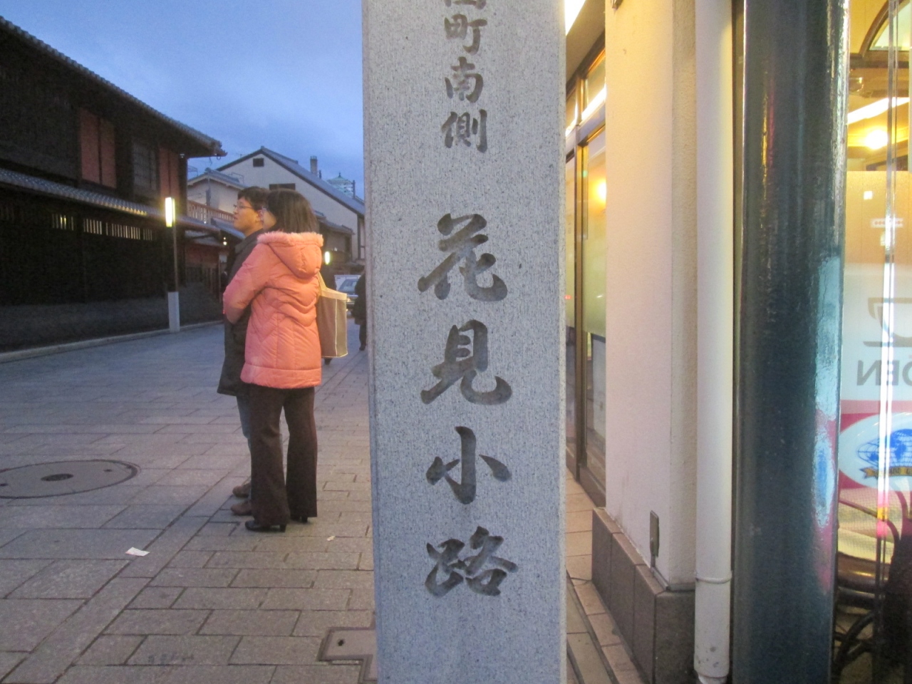 「白川南通」と並び、祇園を代表する街並みの一つが「花見小路」です。「白川南通」がお茶屋・料亭・甘味処など日本人向けの街並みであるのに対し、こちら「花見小路」はギャラリー・カフェ・アクセサリーなど多様で、どちらかと言うと外国人観光客を対象とする店舗が多いといった印象です。ただしほとんどの店舗は伝統家屋、あるいは伝統家屋風に建てられているため、統一感があって美しい街並みだと思います。